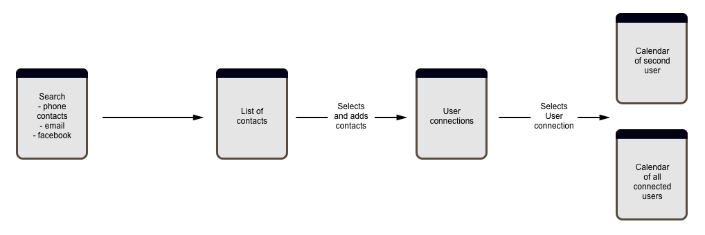 From the selected idea, we mapped out how tasks could be completed using text wireflows in Excel (as we were working remotely). These formed a basis to work from for our first prototype. We built this in Balsamiq Mockups. I had used Sketch before but found Balsamiq very intuitive to use.